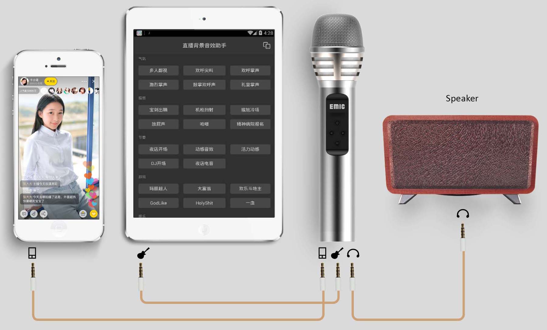 Enjoy a whole new experience...enhance the effect during live broadcast when you sing with K Mic